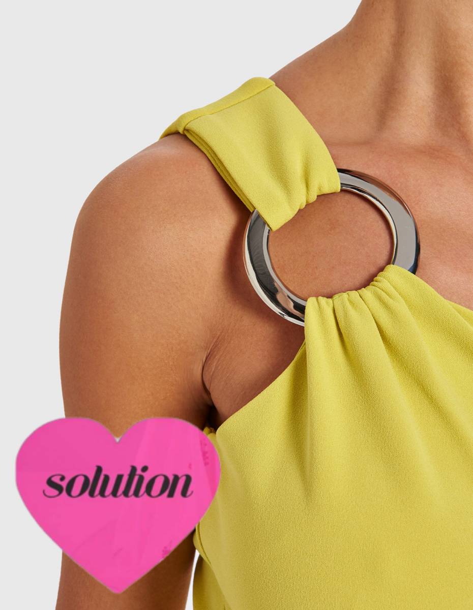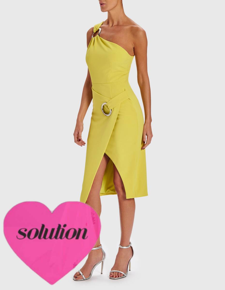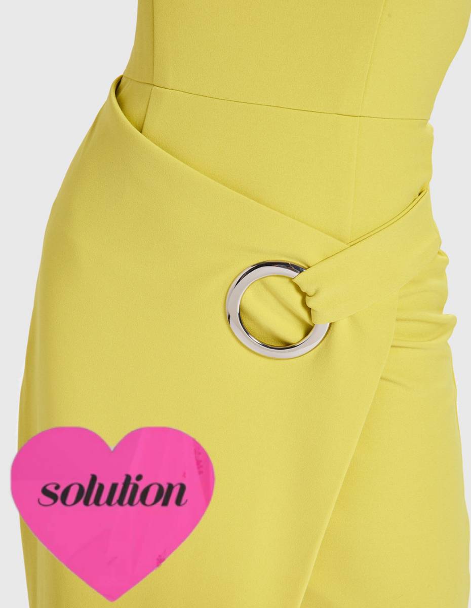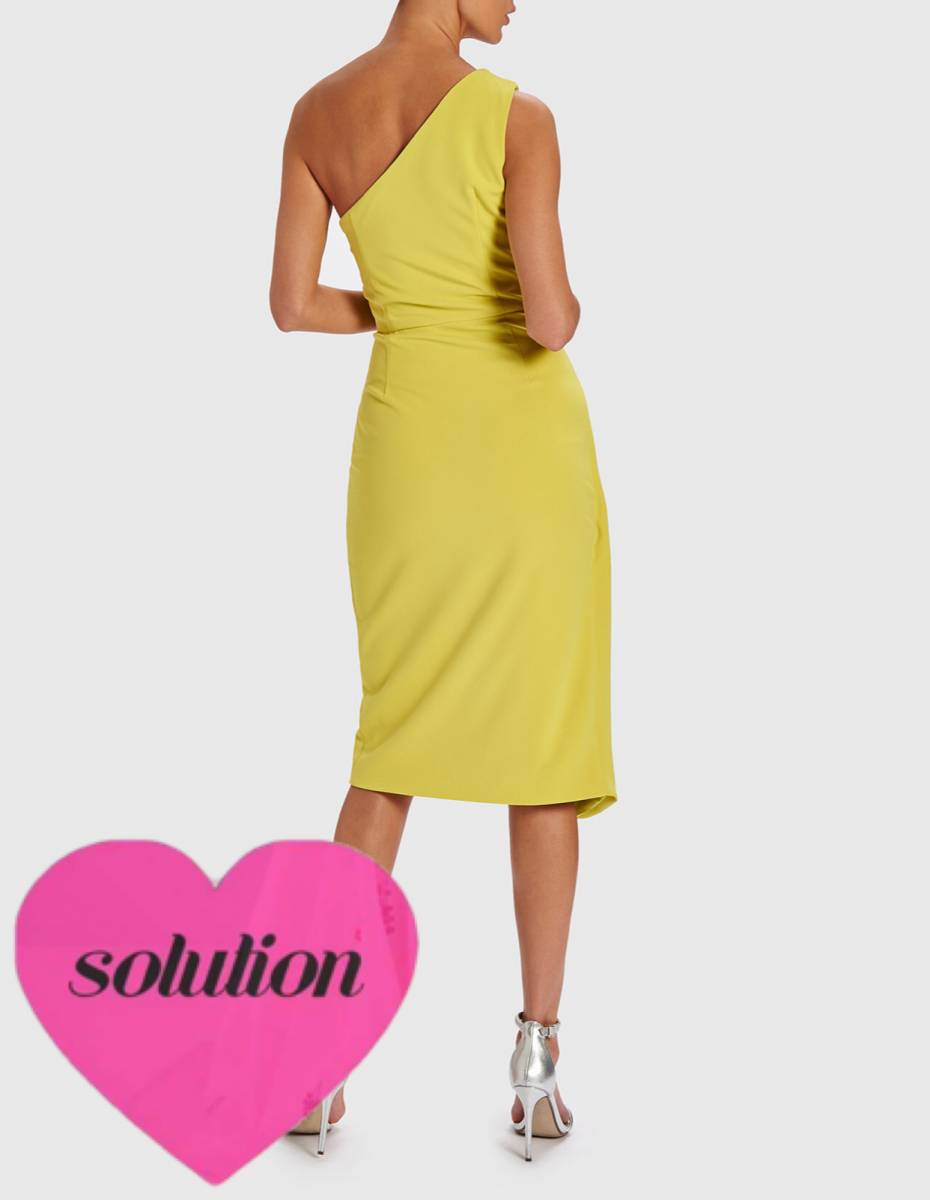 Robe avec une asymétrie sur l’epaule Prêt du corps drapée avec ceinture boucle métal