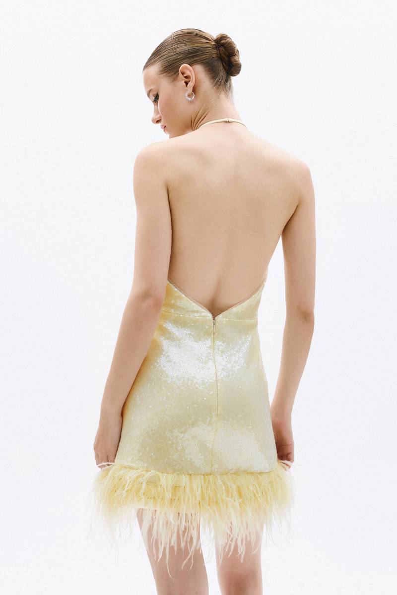 Vous êtes invité à un mariage chic, une soirée d'été et vous recherchez une robe courte de cocktail chic et glamour ? Vous adorerez ce modèle. Sa couleur pastel mettra en valeur votre bronzage. Le décolleté en goutte, le dos nu et les paillettes vous fera briller lors de cet événement.