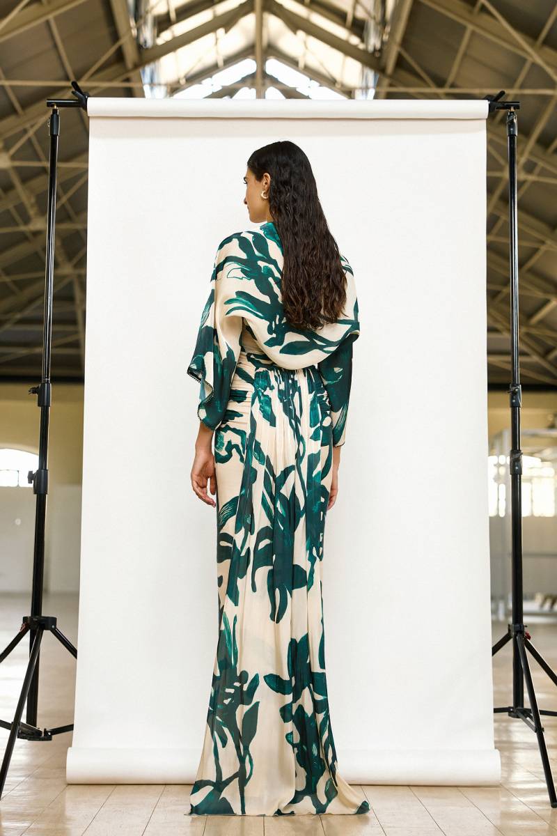 Cette robe de cocktail bohème chic coupe droite avec imprimé vert est idéale pour une invitée à mariage bohème ou champêtre, une soirée cocktail ou une soirée élégante.