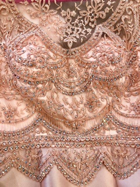 robe longue sirène de soirée rose poudre ornée de strass à Marseille